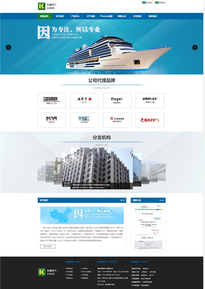 南京科摩电气有限公司是一家专业从事工业电气元器件销售的分销商,通过旗下公司及办事处销售签约生产厂家的工业电气元器件。公司十几年如一日,坚持专业化、品牌化的发展战略,与德国西门子、德国菲尼克斯、德国海格电气、德国劳易测、美国艾力高、上海航同电气、上海纳宇电气、北京卓越信通等厂家建立了长期稳定的合作关系。