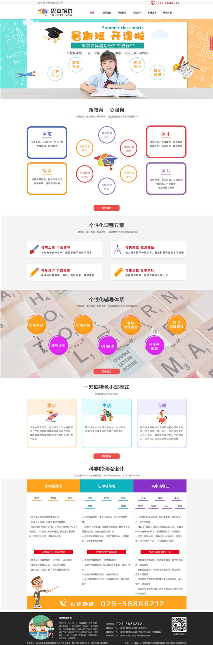 南京思杰培优摒弃传统教育的固守模式,以学生乐于学习、主动学习作为教育的初衷,在所创独特的教学思维与培养机制,辅助雄厚的孩童教育师资力量与先进的教学设备,一对一因材施教,一对四特色小班模式大限度开导想象空间与动手能力,不仅仅以教学,以心理辅导加大培养孩子独立、善良、诚信的基本素质,倡导亲情化的管理和个性化的服务从学习、生活、心理等方面给予关心,学会学习人际交往、自我修养、升学择业以及生活适应等方面的常识。
